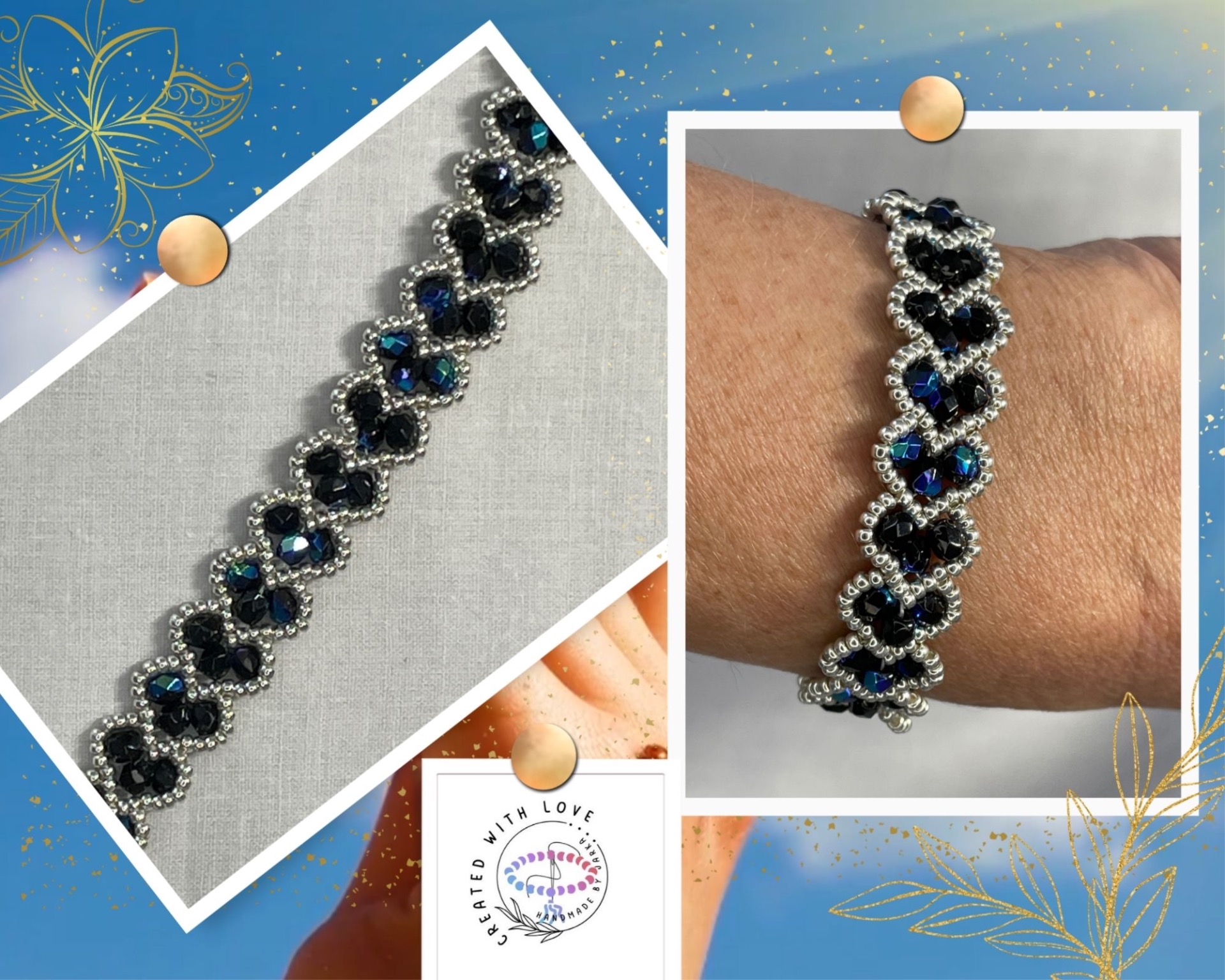 Luxusní korálkový náramek z propojených srdíček, kde každý prvek vypráví příběh elegance a lásky. Černé broušené korálky s magickými tmavomodrými odlesky připomínají hvězdnou oblohu, když se zamilovaní dívají na noční nebe. Stříbrné lemování každého srdíčka přidává jiskru, jako když měsíční světlo tančí na hladině jezera. Tento náramek je dokonalým spojením něžnosti a síly. Pro ženy, které vědí, že skutečná krása se někdy odhalí až při správném úhlu pohledu - stejně jako modrý odlesk na těchto fascinujících korálcích. Ideální pro večerní příležitosti, jako výjimečný dárek pro výjimečnou ženu i každodenní nošení. Cena 299 Kč.