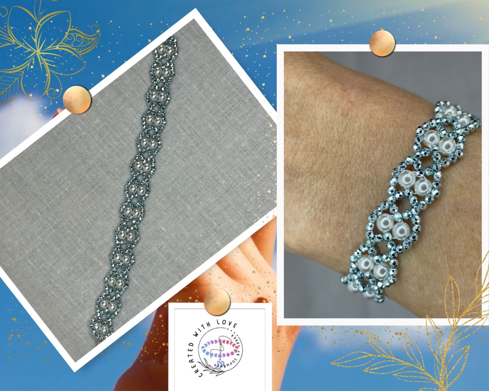 Elegantní korálkový set náramku a náušnic v osvěžující kombinaci světle modré a bílé. Precizně navlečené korálky vytvářejí harmonický vzor připomínající vlnky na klidné hladině jezera. Pravidelné střídání barev přináší pocit klidu a vyrovnanosti.Jemné modré odstíny podporují schopnost vyjadřovat své myšlenky s klidem a jasností. Dokonalý doplněk pro profesní setkání nebo situace, kdy potřebujete komunikovat s lehkostí a přirozeností. Cena 199 Kč.